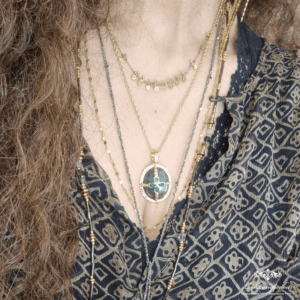 Coup de coeur pour ce collier d’une belle présence avec sa pierre principale d’un beau volume. Il semble avoir traversé les âges et contrées lointaines afin d’être porté tel un talisman